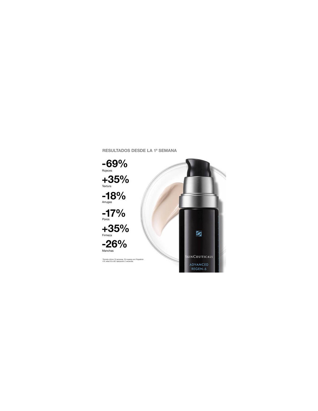Advanced Regen 6- una crema antiedad, inspirada en la ciencia de regeneración global del laser, que corrige visiblemente desde la primera semana las 6 dimensiones del envejecimiento. Esta fórmula con textura patentada es ideal tanto para uso diario como postratamiento. Presenta un efecto antiedad global que actúa sobre arrugas, manchas, textura, firmeza poros, y rojeces, como un laser.